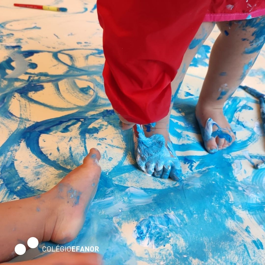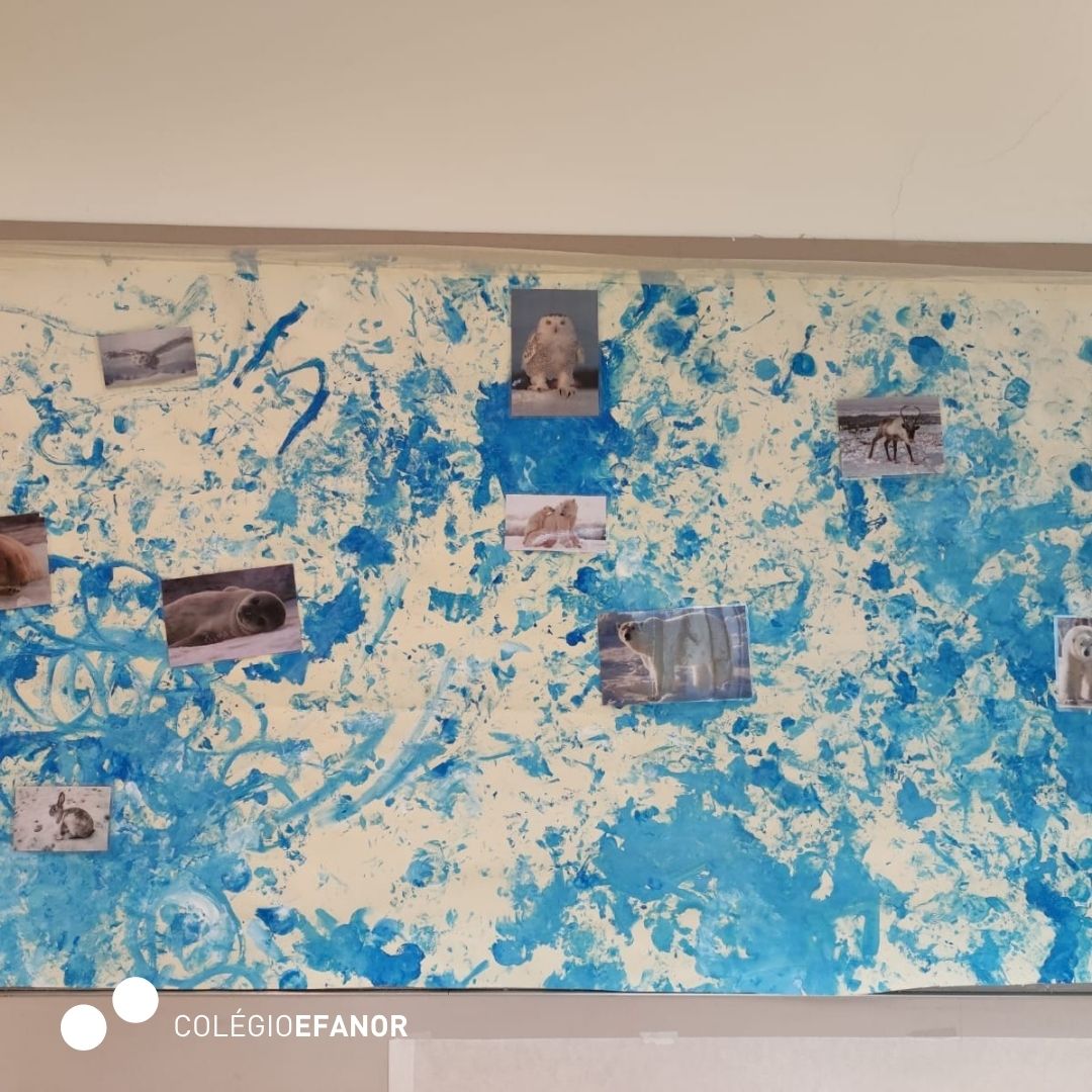 Inspirados pela história, deram asas à criatividade e criaram um glaciar numa atividade de digitinta, onde exploraram cores e movimentos com grande entusiasmo.