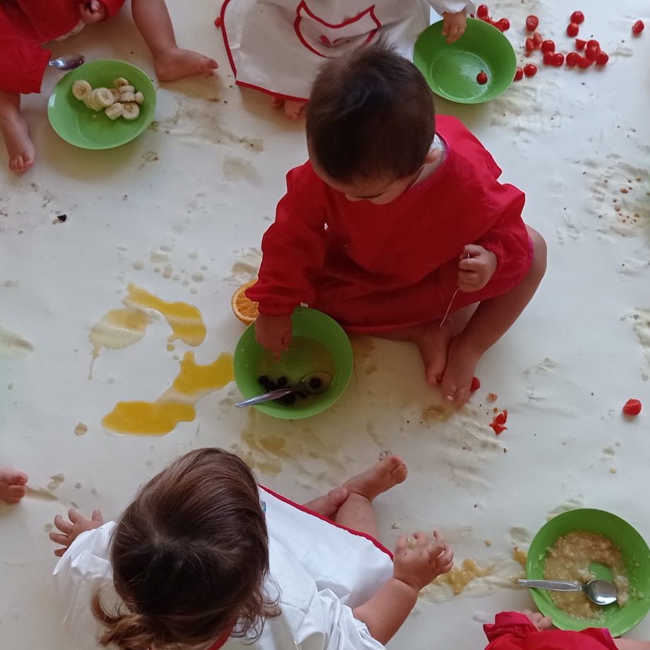 Ao longo dos dias, as crianças participaram em diversas atividades de exploração alimentar — desde carimbagens com frutos a caixas mistério, passando por pequenas experiências culinárias como a confeção de sopas, pães de abóbora, sumos de laranja e romã, bolos e bolachinhas.